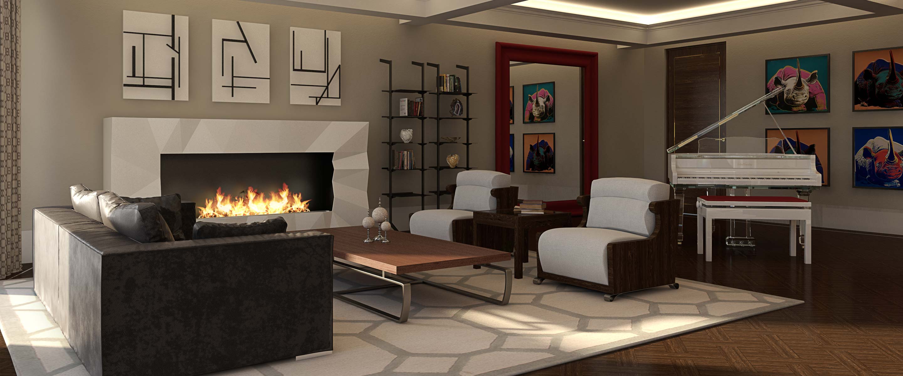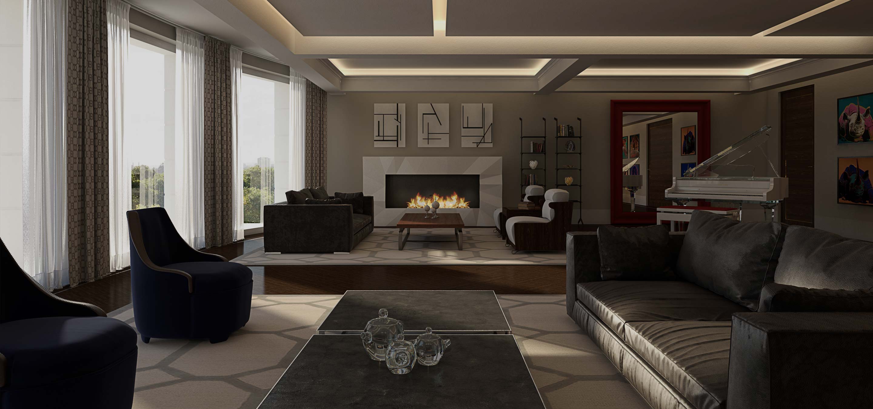 The style we wanted to achieve was contemporary combining soft and comfortable finishes including a statement fireplace and art works for visual impact. The colour palette was complimented throughout using matt finishes, sand touch wallpaper, delicate curtains and the finest quality for all leathers, velvet and rugs. The attention to detail added layers of texture and brought the subtle colour palette of grey, brown and ivory tones to life.