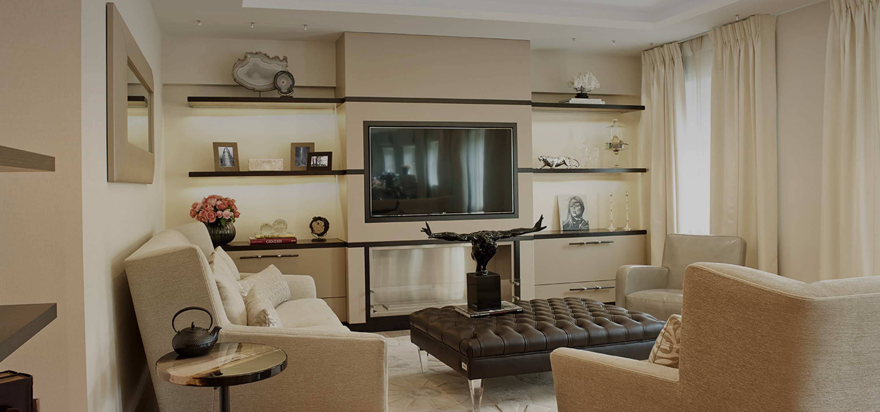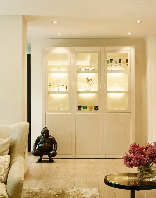 The brief was to create a seamless design that has continuity throughout the property, featuring sumptuous textures, dramatic lighting and accents of colour, giving this neutral scheme a real ‘wow’ factor. Raising the ceilings and opening the spaces such as in the living / dining area we created a functional and uplifting space.