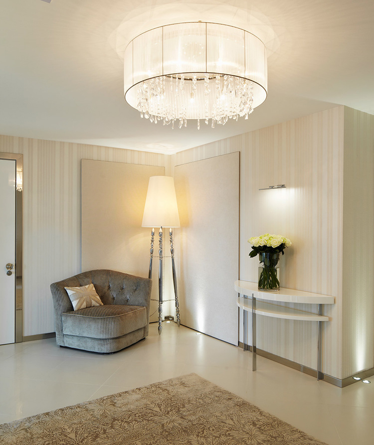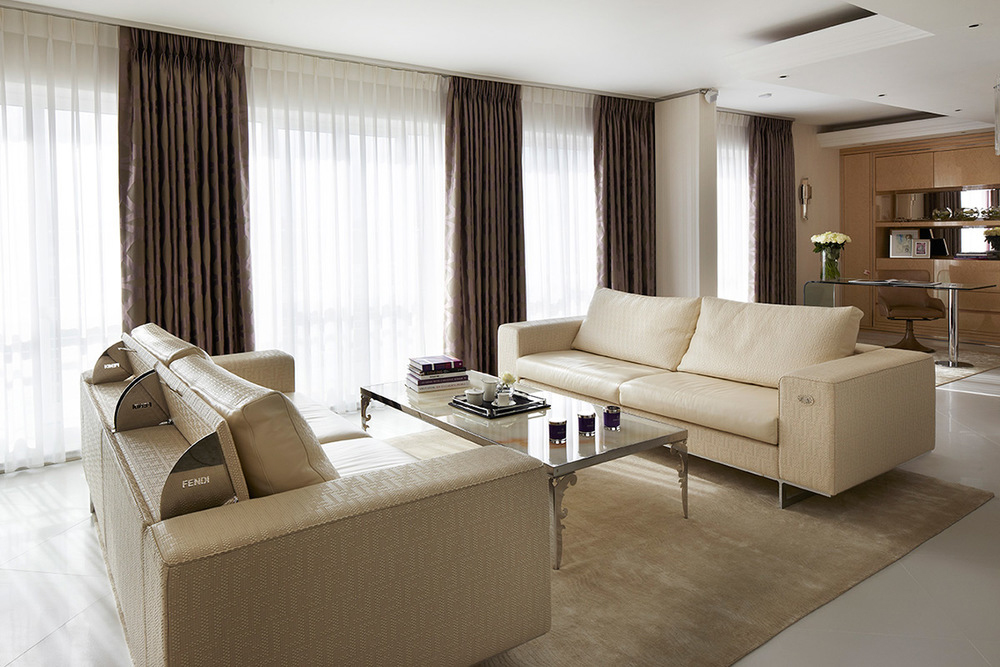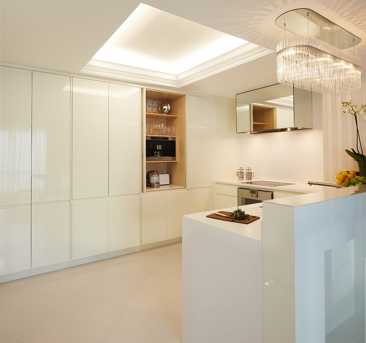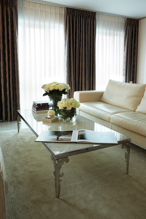 The neutral colour palette is complemented by the use of accent coloured accessories, lacquered finishes, sand touch wallpaper, delicate studded curtains and the finest quality leathers and rugs. The attention to detail added layers of texture and interest to a subtle colour palette of ivory and whites.