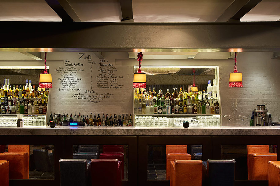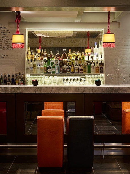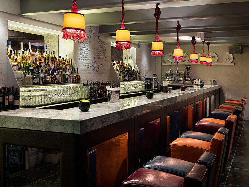 Anna Casa Interiors took inspiration by paying homage to the local history and the fashionable King’s Road association, with a unique style and concept. The key was to differentiate the design from the typical vintage look, achieving character and uniqueness by blending an eclectic fusion of furniture and lighting from Baxter - renowned Italian luxury furniture manufacturer. Their high quality soft leathers complimented the other materials used, such as the blackened steel frames, walnut wood tables, fabric pendant lights, antiqued mirrors, and a marble bar counter which all contributed to a stylistic and intimate atmosphere.